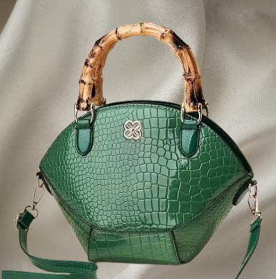 Luxury crossbody handbag with Bbmboo-like vertical stripe strap. Golden-Tone Hardware & Zipper Closure.ย Elegant for parties or everyday use.