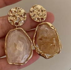 Add a touch of sparkle with these Textured Stone Earrings featuring a charming hammered gold trim. The unique (white) stone centerpiece brings natural beauty, while the playful gold accents catch the light just right. Perfect for adding a little fun and flair to any outfit! Pierced earrings.